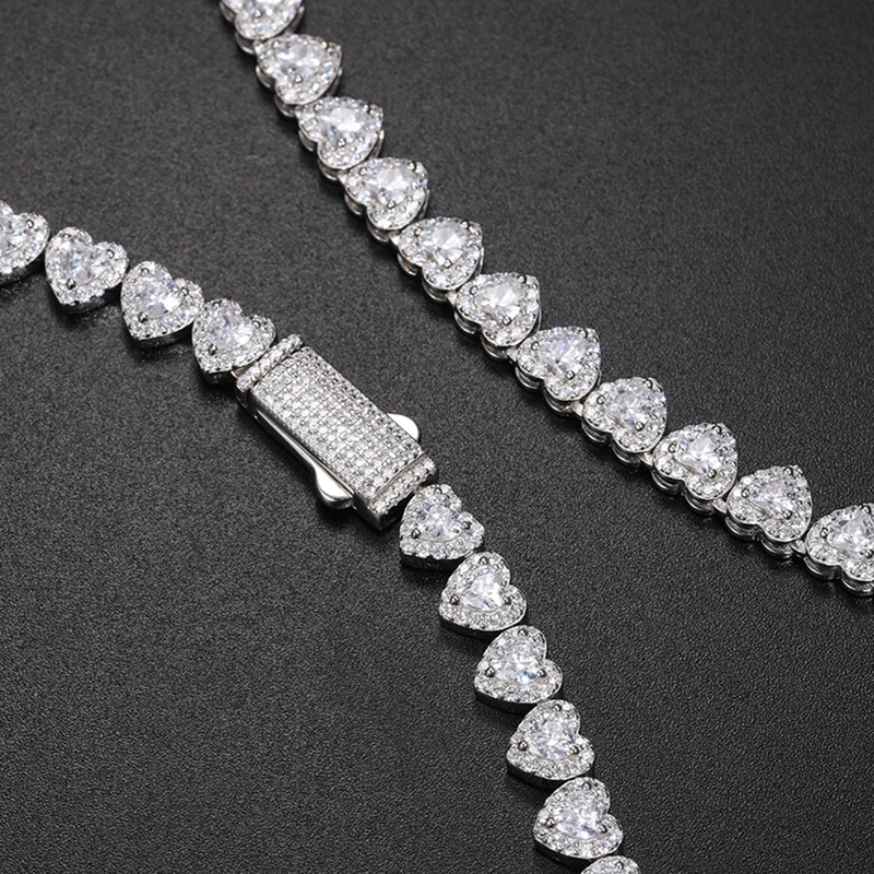 Lleva tu cuello con el lujo que mereces. Nuestro collar de nombre Heart es una deslumbrante pieza artesanal hecha con diamantes de moissanita VVS1 que brillan más que cualquier gema.